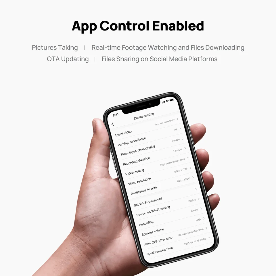 The 32GB of built-in storage ensures that you have enough space to save all your footage, and it also supports loop recording so the oldest footage will be automatically overwritten.